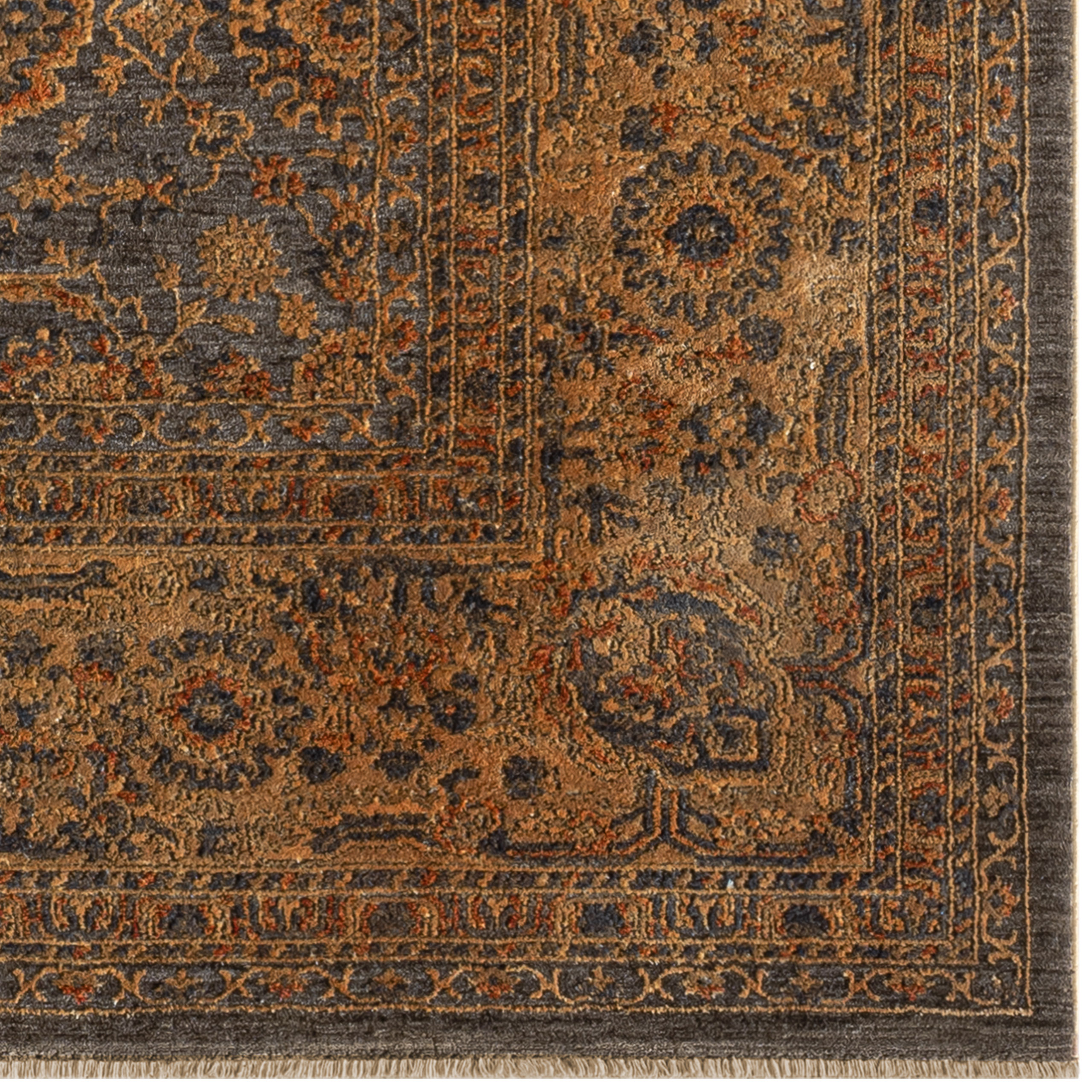 Orientalischer Teppich mit Blumen Ornamenten in kupfer blau