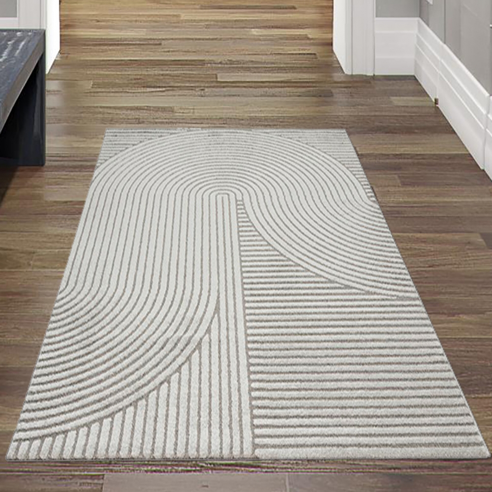 Teppich Wohnzimmer geometrisch Linien- und Bogenmuster grau