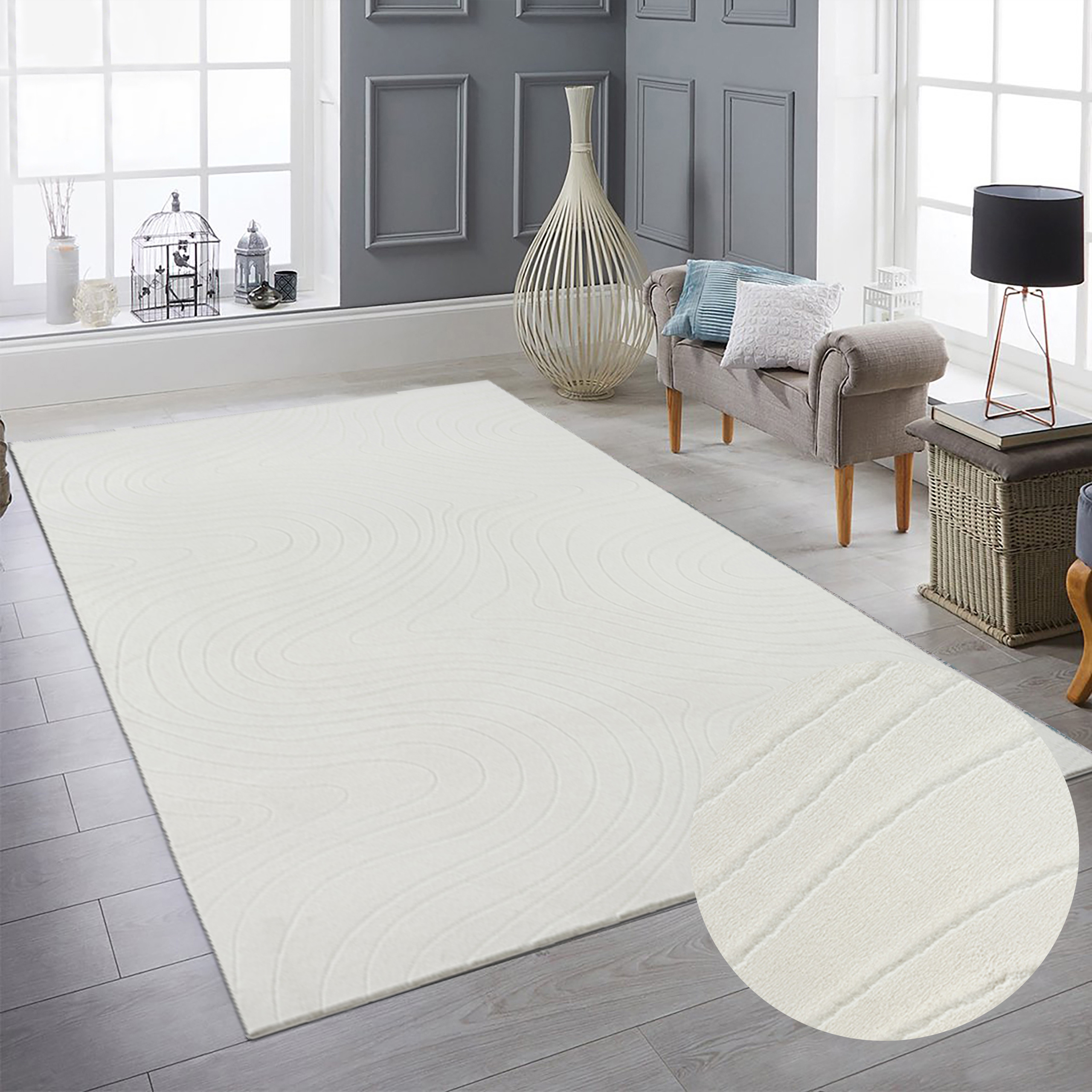 Einfarbiger flacher Wohnzimmerteppich Bogenmuster in creme
