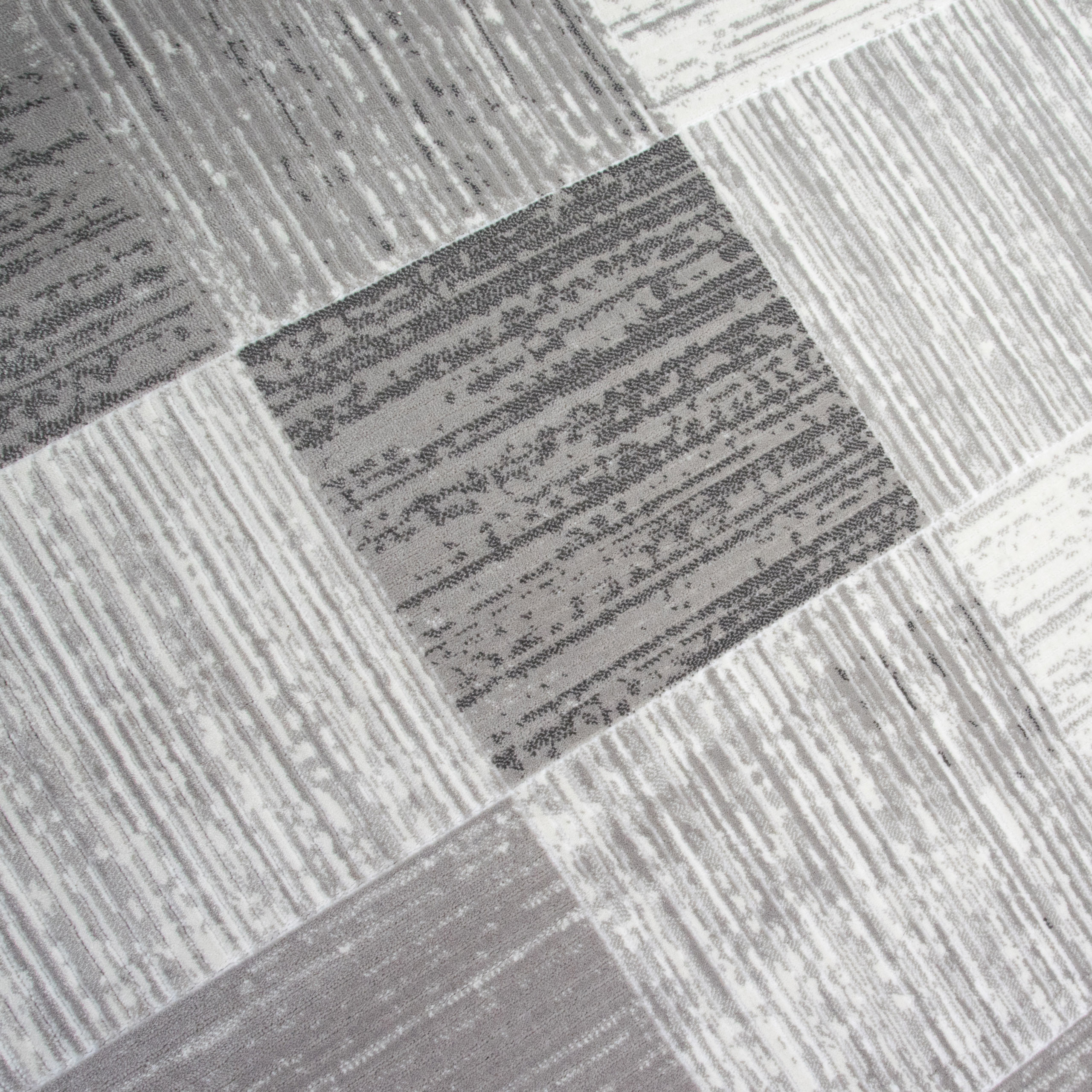 Moderner Kurzflorteppich mit Karomuster Grau Beige