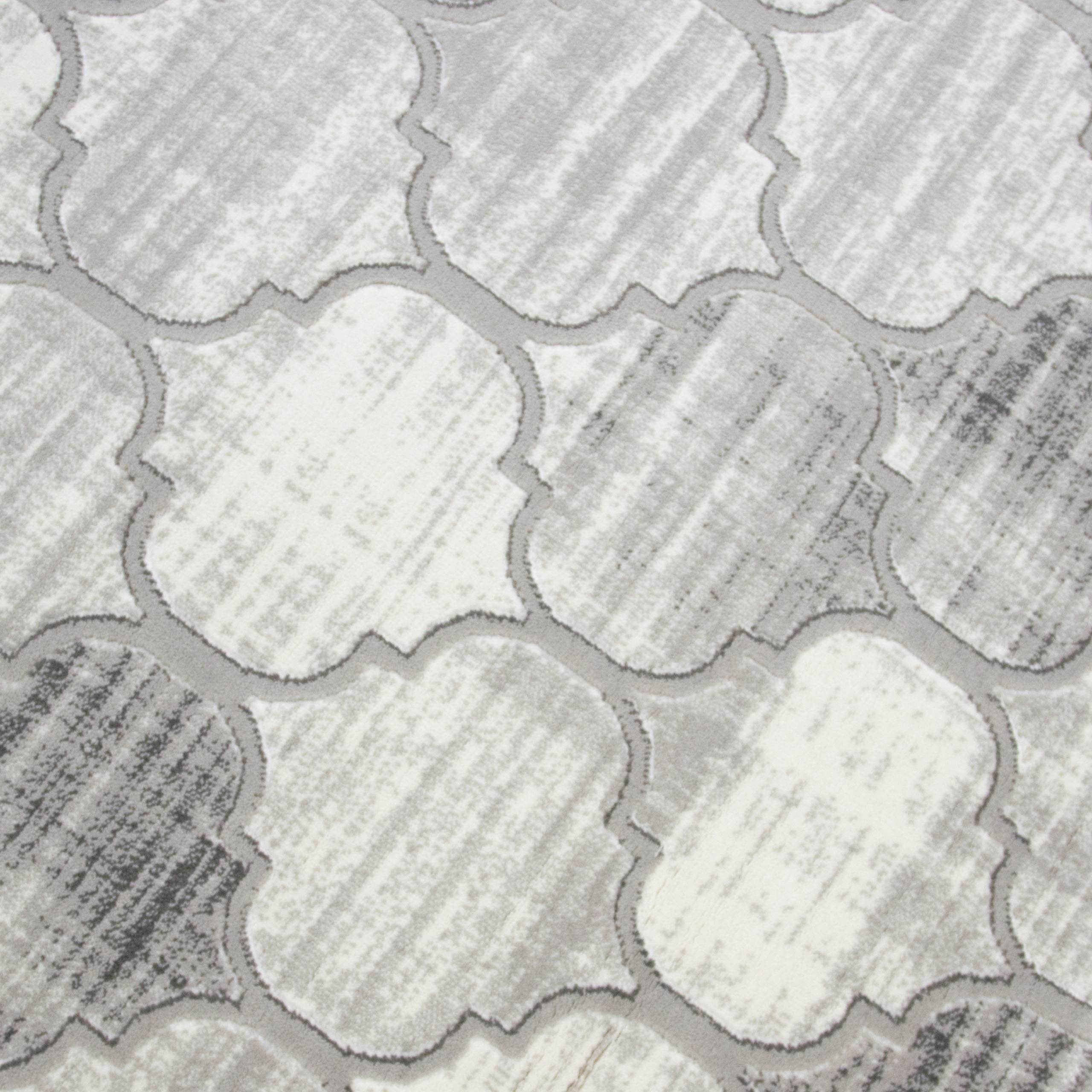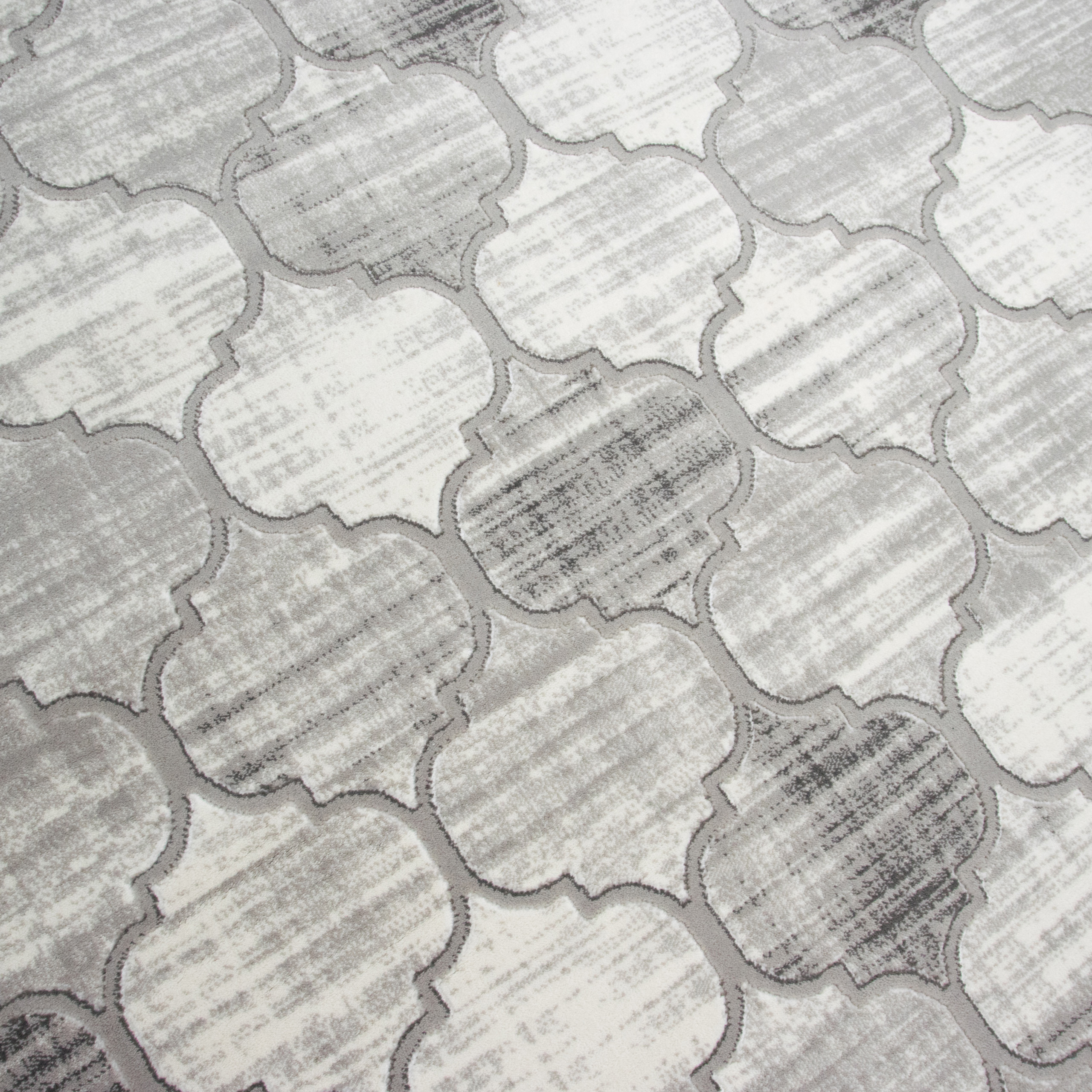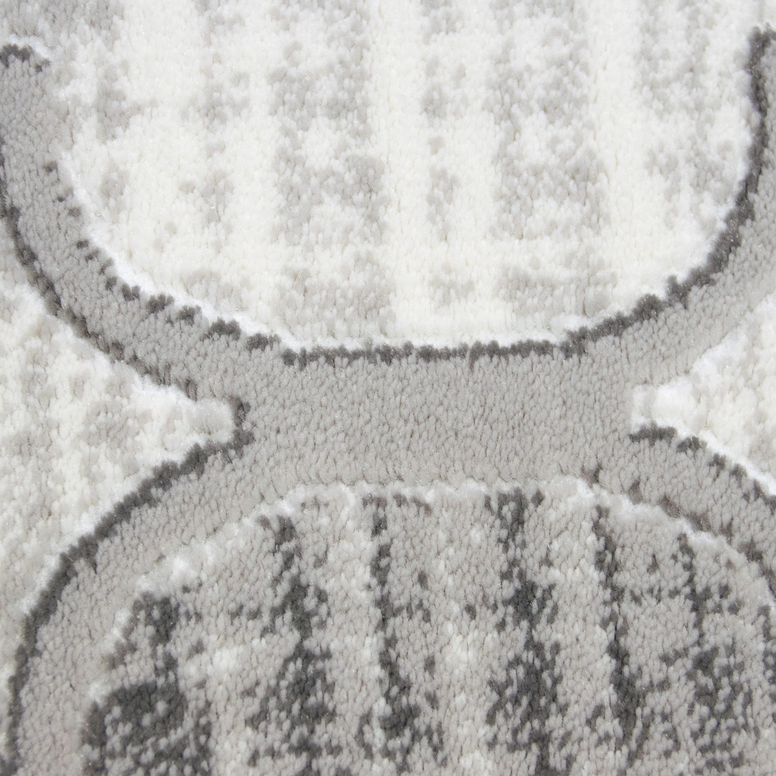 Moderner Kurzflorteppich mit Ornamentmuster Grau-Beige mit Cremeakzenten