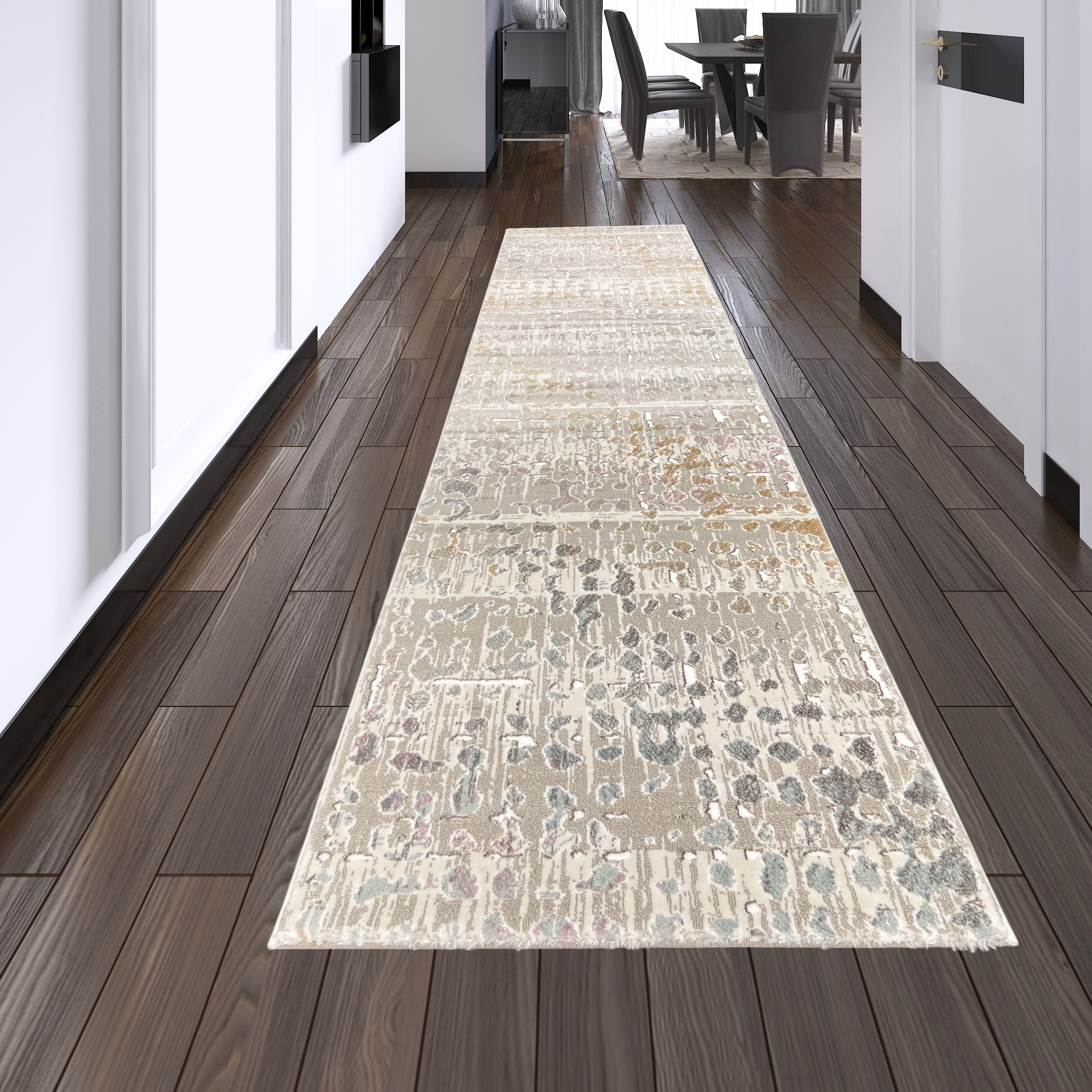 Moderner Kurzflorteppich mit elegantem Farbverlauf in Beige Multi