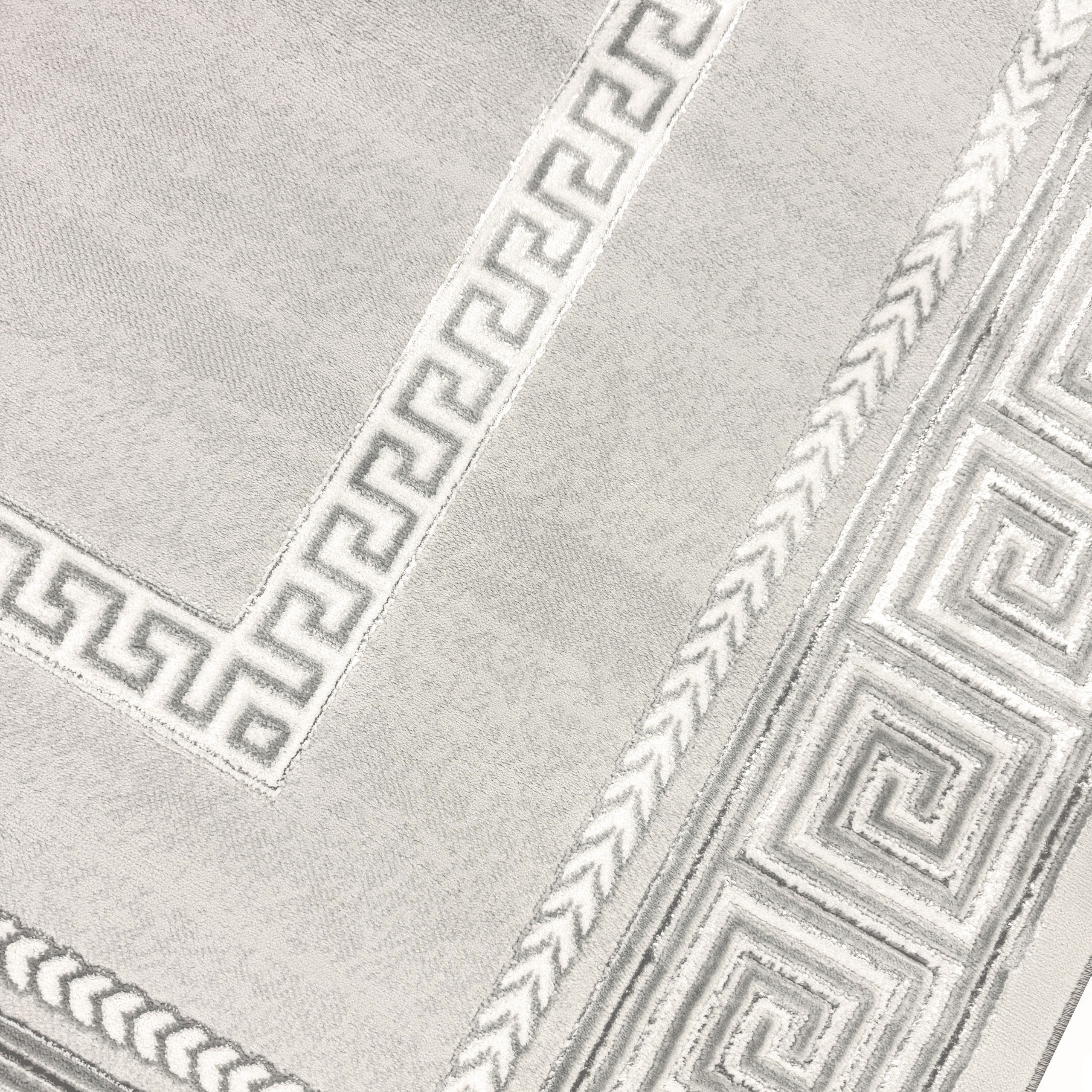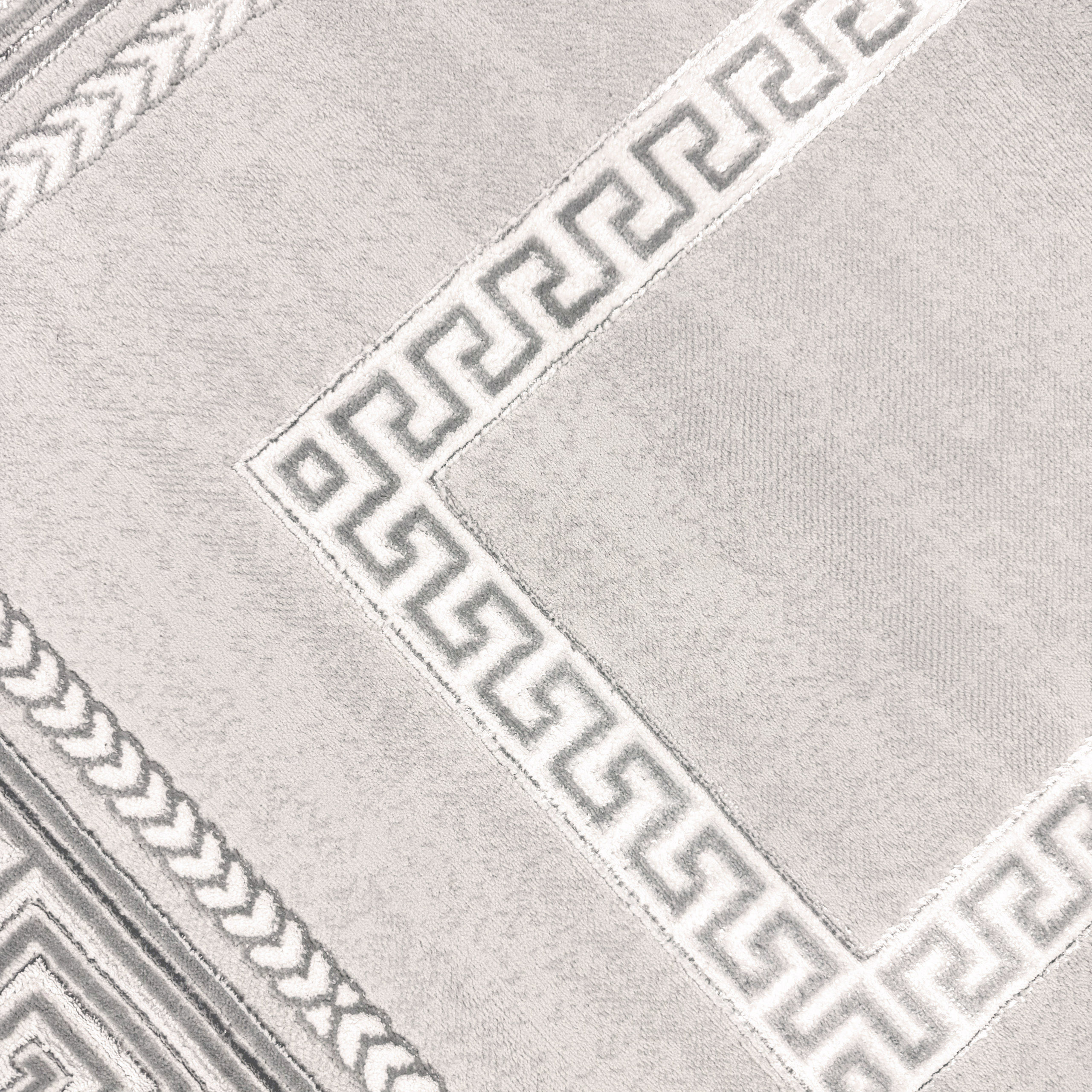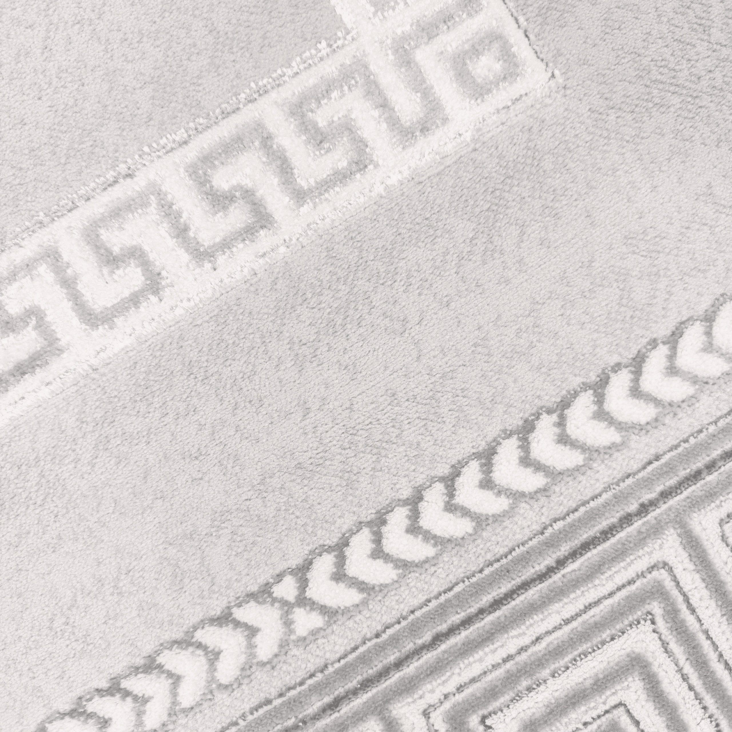 Teppich grau silber Bordüre Design pflegeleicht strapazierfähig Wohnzimmer