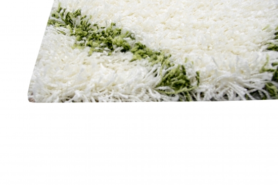 Shaggy Wohnzimmerteppich Hochflor Langflor Rautenmuster in Creme Grün