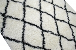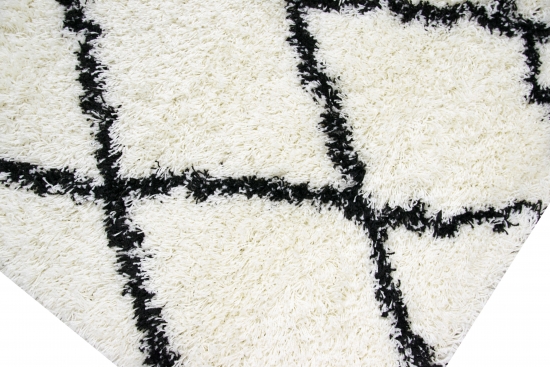 Shaggy Wohnzimmerteppich Hochflor Langflor Rautenmuster in Creme Schwarz