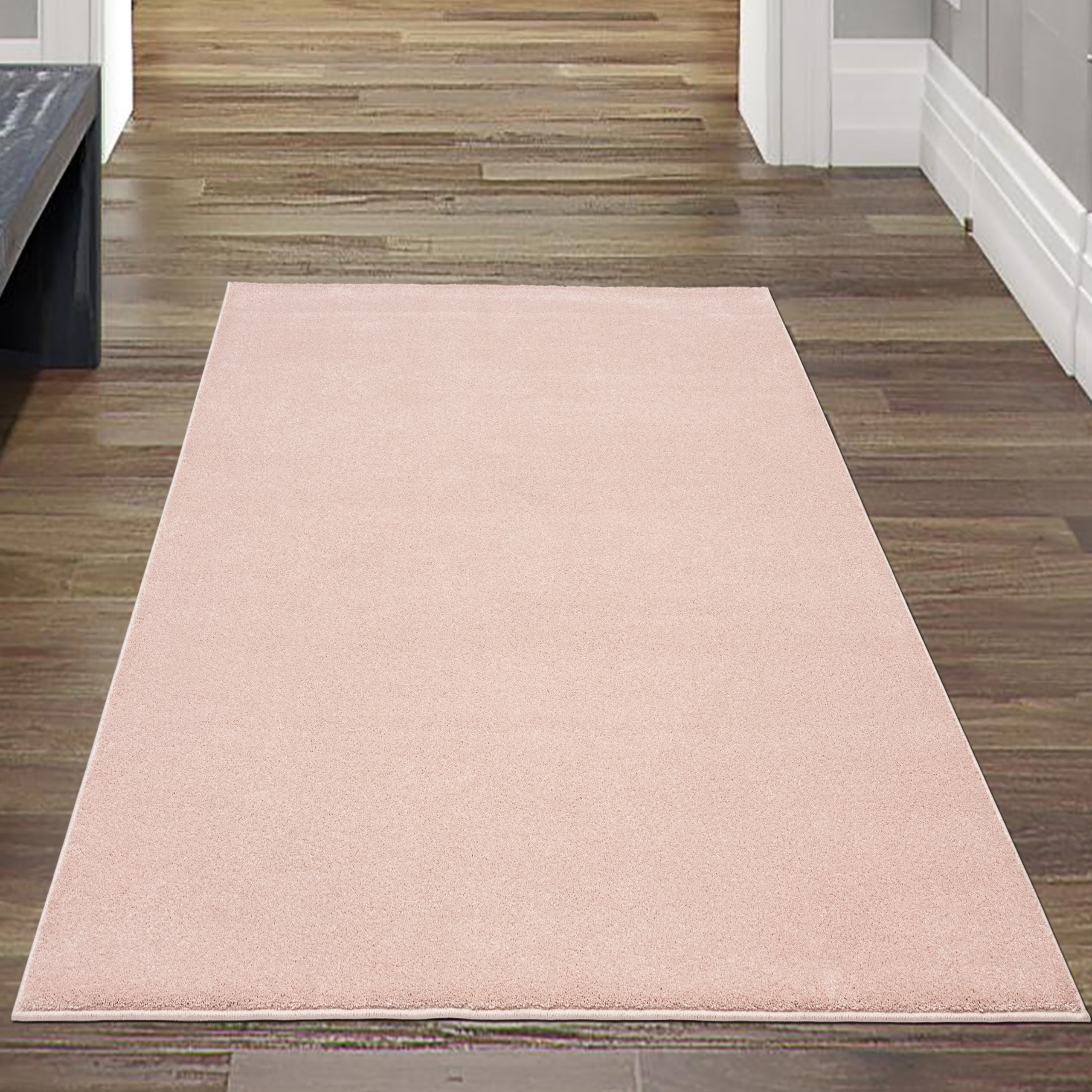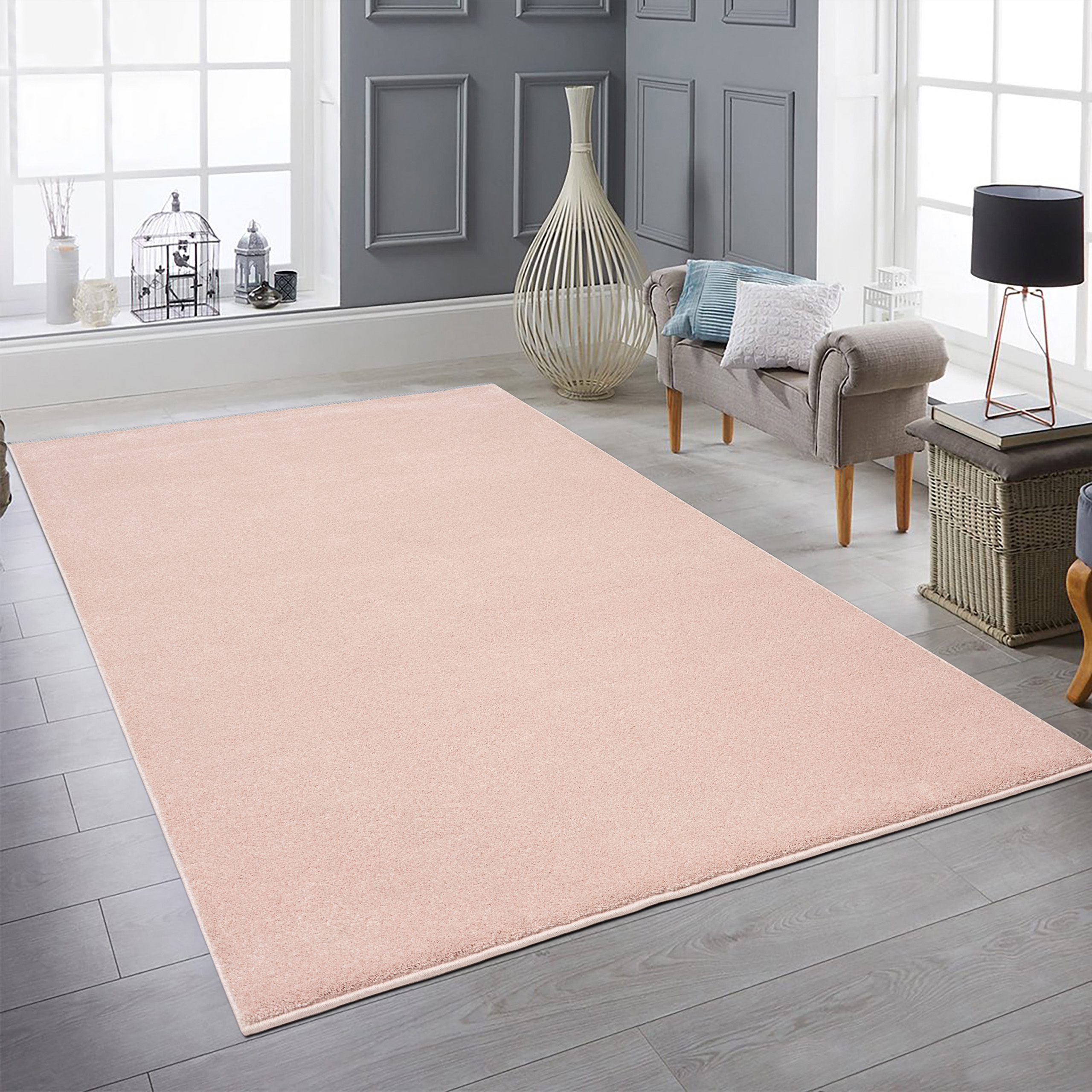 Wohnzimmer Teppich modern Kurzflor mit Uni Design in Rosa