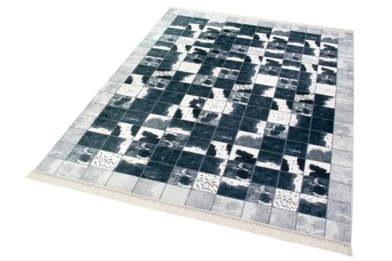 Kuhfell Imitat Teppich Patchwork in Schwarz Grau Weiß