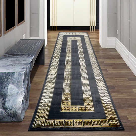 Teppich modern mit klassischer Bordüre in schwarz gold